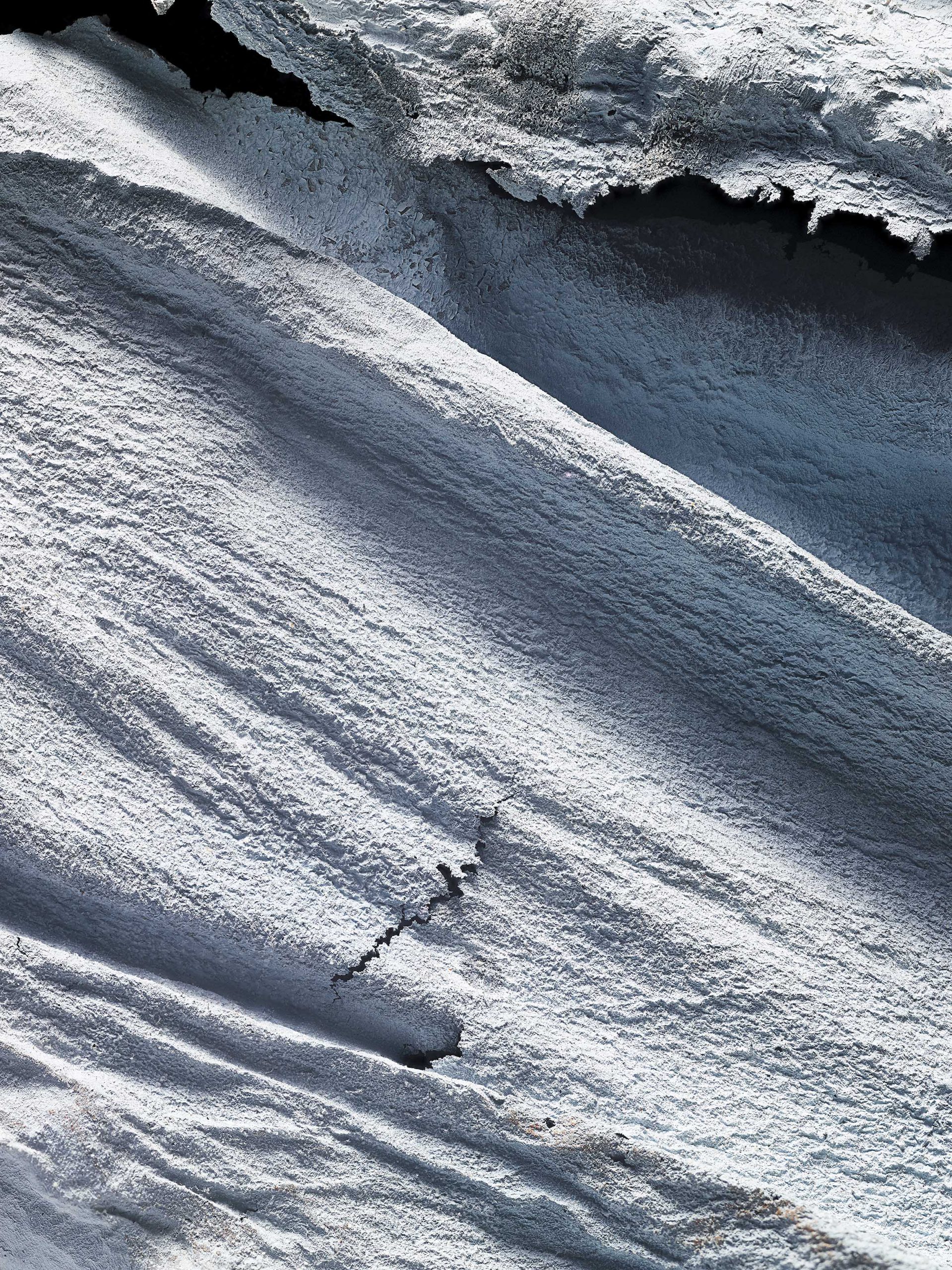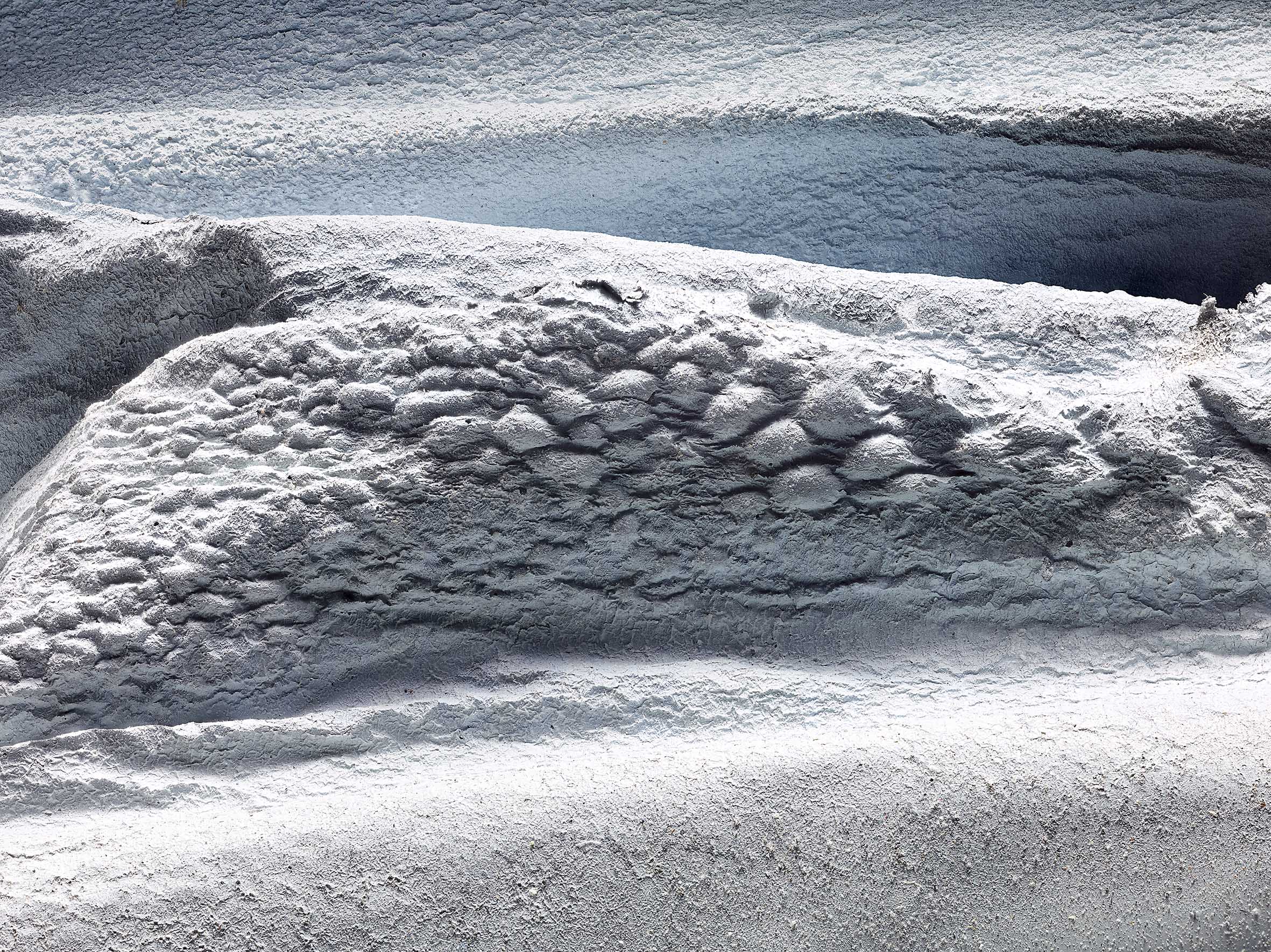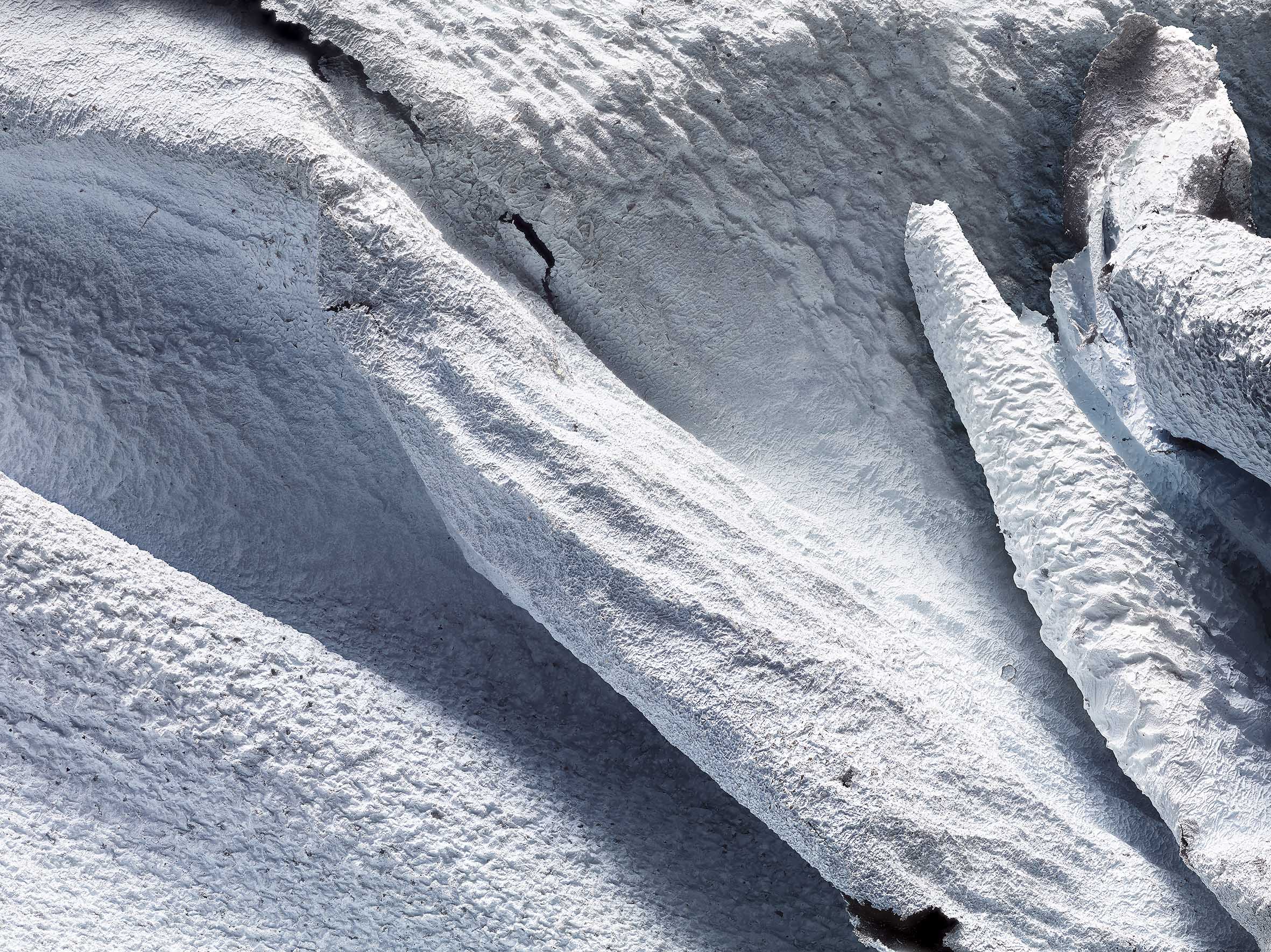 Snow, is project I have been following for several years now. I try to create the illusion of glaciers, snowy landscapes, strange and abstract worlds. Do you see the snow? Great, isn’t it? But in all my photographs of this project snow or ice does not appear even once. I made experiments with different materials. For example: flour, powdered sugar, textiles, ashes and burnt objects. In the images you can see here, material is from a burnt aluminum beer can, which was in the fire for several hours. The circle is therefore closing when I am using a plant containing aluminum to tone these series.